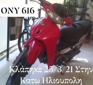 ''Καλησπέρα σε όλους. Παιδιά μια μικρη βοήθεια παρακαλω, το μηχανακι κλάπηκε στις 25/3/21 τα μεσάνυχτα απο την οδο Καλαμά 6 Ηλιούπολη...