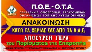 Η ΠΟΕ ΟΤΑ καλεί τους εργαζόμενους, μαζικά, δυναμικά και ενωτικά να συμμετάσχουν στην Στάση Εργασίας που αποφάσισε να πραγματοποιήσει η Α.Δ.Ε.Δ.Υ. την ΠΑΡΑΣΚΕΥΗ 18 ΦΕΒΡΟΥΑΡΙΟΥ 2022, από τις 7.00 έως τις 11.00 το πρωί, για τους εργαζόμενους των Ομοσπονδιών που έχουν αναφορά στο Επίδομα Επικίνδυνης και Ανθυγιεινής Εργασίας και στη Συγκέντρωση Διαμαρτυρίας έξω από το Γενικό Λογιστήριο του Κράτους (Πανε- πιστημίου 37-Αθήνα) στις 9:00 το πρωί.