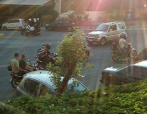 Καμία ενέργεια δεν έκανε ούτε όταν διαπίστωσε ότι περίπου είκοσι άτομα κατέβηκαν από τα μηχανάκια με κοντάρια στα χέρια και μπήκαν στο «Συνεργείο», προκαλώντας «φασαρία και αναστάτωση».