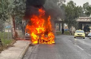 Στις φλόγες τυλίχθηκε, το πρωί της Παρασκευής, αυτοκίνητο στην είσοδο της Συγγρού απο Πειραιά.