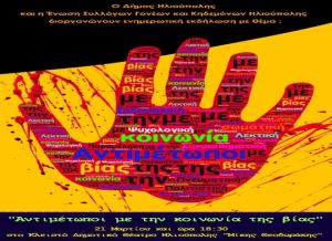 «Αντιμέτωποι με την κοινωνία της Βίας»: Ενημερωτική εκδήλωση στις 21/3 στο Θέατρο του Δημαρχείου Ηλιούπολης