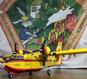 Ο κ. Στάθης, ασχολείται με τον μοντελισμό και αφιέρωσε αρκετές δεκάδες ώρες για να τελειοποιήσει το ακριβές αντίγραφο ενός πυροσβεστικού αεροσκάφους τύπου Canadair CL-215.Η κλίμακα που χρησιμοποιήθηκε είναι 1/72 και μάλιστα πρόκειται για ένα πιστό αντίγραφο από μία ιδιαίτερη έκδοση του εν λόγω αεροσκάφους.