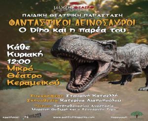Το Πολιτιστικό Πάρκο παρουσιάζει την διαδραστική θεατρική παράσταση για παιδιά άνω των τεσσάρων ετών της Σταυρινής Κατσελλή «ΦΑΝΤΑΣΤΙΚΟΙ ΔΕΙΝΟΣΑΥΡΟΙ – Ο Dino και η παρέα του»