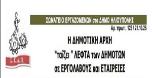 " ΠΟΛΛΑ ΤΑ ΛΕΦΤΑ ΑΡΗ "...... και όπως φαίνεται ΛΕΦΤΑ υπάρχουν στο ταμείο του δήμου αλλά ΜΟΝΟ για να "ταΐζουν" τους ΕΡΓΟΛΑΒΟΥΣ και τις ΕΤΑΙΡΕΙΕΣ.
