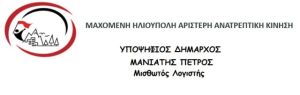 ΥΠΟΨΗΦΙΟΣ ΔΗΜΑΡΧΟΣ – ΜΑΝΙΑΤΗΣ ΠΕΤΡΟΣ Μισθωτός Λογιστής