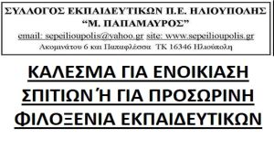 ΚΑΛΕΣΜΑ ΓΙΑ ΕΝΟΙΚΙΑΣΗ ΣΠΙΤΙΩΝ Ή ΓΙΑ ΠΡΟΣΩΡΙΝΗ ΦΙΛΟΞΕΝΙΑ ΕΚΠΑΙΔΕΥΤΙΚΩΝ