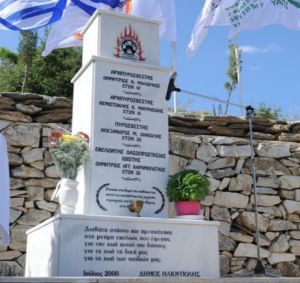 Οι τρεις πυροσβέστες εντοπίζονται αγκαλιασμένοι και λίγο πιο μακριά ο εθελοντής.