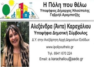 Η αγάπη και η ευαισθησία της για το περιβάλλον και για τα αδέσποτα ζώα την ώθησε να βάλει υποψηφιότητα για δημοτική σύμβουλος με την «Πόλη που θέλω», ώστε μαζί με νέους ανθρώπους να κάνουν την Ηλιούπολη ένα δήμο που σέβεται τους κατοίκους και το περιβάλλον.