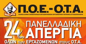 Την πραγματοποίηση 24ΩΡΗΣ Απεργίας την ΠΕΜΠΤΗ 14 ΔΕΚΕΜΒΡΙΟΥ 2023 ανακοίνωσε η ΠΟΕ-ΟΤΑ, καλώντας σε Πανελλαδική Συγκέντρωση Διαμαρτυρίας την ίδια ημέρα, στις 11.00 το πρωί στην Πλατεία Καραϊσκάκη-Αθήνα.