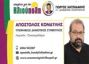 ''Καλωσορίζουμε με χαρά στη δημοτική μας παράταξη «Ενωμένοι για την Ηλιούπολη» τον Αποστόλη Κονδύλη.