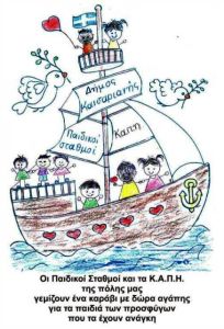 Οι παιδικοί σταθμοί και τα ΚΑΠΗ της Καισαριανής γεμίζουν ένα καράβι με δώρα αγάπης για τα παιδιά των προσφύγων που τα έχουν ανάγκη.