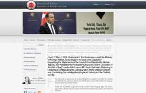 Το τουρκικό υπουργείο Εξωτερικών με ιδιαίτερη απρέπεια αναφέρθηκε στις δηλώσεις που έκανε τόσο ο Πρόεδρος της Ελληνικής Δημοκρατίας, Προκόπης Παυλόπουλος όσο και ο πρωθυπουργός, Αλέξης Τσίπρας για τη Γενοκτονία των Αρμενίων από τους Τούρκους κατά την πρόσφατη επίσκεψη του Αρμένιου προέδρου στην Αθήνα.