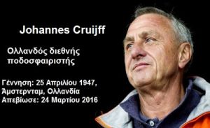 «Το ποδόσφαιρο μου έδωσε τα πάντα, το τσιγάρο μου τα πήρε πίσω». Ο Χέντρικ Γιόχαν Κρόιφ, ο Ολλανδός γητευτής της μπάλας και μηχανή των γκολ, μέλος της σπουδαίας ομάδας των «οράνιε» και του μεγάλου Αγιαξ της τριετίας 1971-72, που εφήρμοσε πιο επιτυχημένα το ολοκληρωτικό ποδόσφαιρο που οραματίστηκε ο Άγγλος προπονητής, Τζακ Ρέινολντς, έφυγε από τη ζωή ύστερα από μεγάλη μάχη με τον καρκίνο σε ηλικία 68 ετών στη Βαρκελώνη.