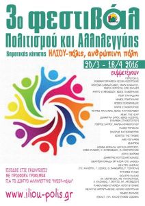 Στα πλαίσια του 3ου ΦΕΣΤΙΒΑΛ ΠΟΛΙΤΙΣΜΟΥ & ΑΛΛΗΛΕΓΓΥΗΣ της Δημοτικής Κίνησης ΗΛΙΟΥ-πόλις,ανθρώπινη πόλη, τρία θέατρα μας προσφέρουν ομαδικό μειωμένο εισιτήριο.