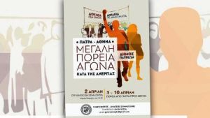 Χαιρετίζουμε την πρωτοπόρα πρωτοβουλία του Δήμου Πατρέων για τη μεγάλη πορεία αγώνα κατά της ανεργίας, που διοργανώνεται από Πάτρα - Αθήνα (3 έως 10 Απριλιου).