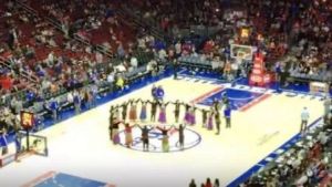 Στον αγώνα όμως μεταξύ Φιλαδέλφεια 76ers και της Νέας Υόρκης, την παράσταση έκλεψε η ποντιακή λύρα και τα Ελληνόπουλα από την Κορομηλιά Κιλκίς και από τον Ποντιακό Σύλλογο Φιλαδέλφειας “ΑΚΡΙΤΑΙ”.