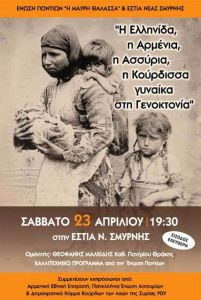 Η Ένωση Ποντίων «Η Μαύρη Θάλασσα» διοργανώνει εκδήλωση με θέμα «Η Ελληνίδα, η Αρμένια, η Ασσύρια και η Κούρδισσα γυναίκα, θύματα της γενοκτονίας».