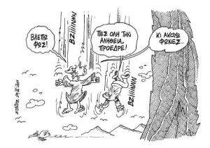 Κατά την άποψη, βεβαίως, των παλαιών απολογητών του Μνημονίου δεν υφίσταται κατοχή, αλλά οικειοθελής εκχώρηση μέρους της εθνικής κυριαρχίας, προς όφελος του κοινού μας τσαρδακίου, της Ευρώπης (τσαρδάκι = τουρκ. τσαρντάκ – πρόχειρη καλύβα από κλαδιά).