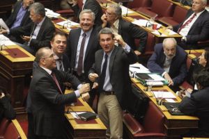 Είναι περιττό να σημειωθεί ότι οι έξαλλοι πανηγυρισμοί σημειώθηκαν στην Ολομέλεια της Βουλής όπου σε εξέλιξη ήταν η συζήτηση των 7.500 του πολυνομοσχεδίου που ψηφίστηκε τελικά λίγες ώρες αργότερα. Τι κι αν ψηφίστηκαν τα νέα μέτρα; Τι είναι πιο σημαντικό;