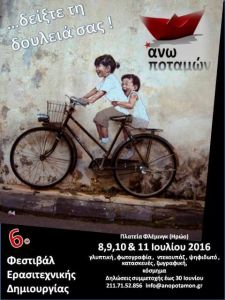 To Πολιτιστικό στέκι Ηλιούπολης «άνω ποταμών» προσκαλεί όλους να δείξουν τη δουλειά τους, στο 6ο Φεστιβάλ Ερασιτεχνικής Δημιουργίας, που θα γίνει από τις 8 έως και τις 11 Ιουλίου, στην πλατεία Φλέμινγκ.