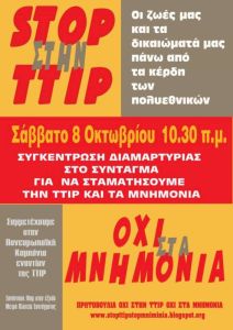 Ένας αγώνας που θα στοχεύει στο σταμάτημα των διαπραγματεύσεων και την ψήφιση της TTIP, και στην κατάργηση των μνημονίων στη χώρα μας.