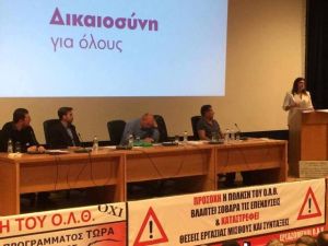Την εκδήλωση συνδιοργάνωσαν η «Δικαιοσύνη για Όλους», το «ΟΧΙ στα Ναι τους» και σωματεία εργαζομένων στον Ο.Λ.Θ.