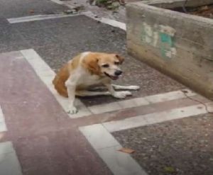 Το ζώο από παλιότερο χτύπημα από αυτοκίνητο έχει πρόβλημα στην σπονδυλική στήλη και ουσιαστικά είναι παράλυτο στα πίσω πόδια.