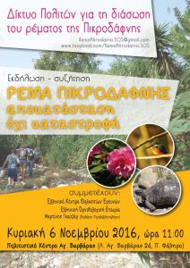 Αφορμή της εκδήλωσης αποτέλεσε η έγκριση των περιβαλλοντικών όρων της Μελέτης Περιβαλλοντικών Επιπτώσεων (Μ.Π.Ε.) της μελέτης οριοθέτησης του έργου «Ανάπλαση ρέματος Πικροδάφνης από Λ. Βουλιαγμένης έως εκβολή», από το Περιφερειακό Συμβούλιο Αττικής, στις 30 Αυγούστου 2016.