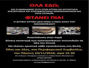 Στις 10/11/16, στο Περιφερειακό συμβούλιο Αττικής, θα συζητηθεί η ΣΜΠΕ (Στρατηγική Μελέτη Περιβαλλοντικών Επιπτώσεων) του νέου ΠΕΣΔΑ (Περιφερειακό Σχέδιο Διαχείρισης Αποβλήτων) Αττικής.