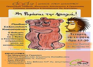 Η εκδήλωση θα πραγματοποιηθεί την Τετάρτη 16/11/2016, ώρα 17:30, στο 11ο Δημοτικό Σχολείο Αγ. Δημητρίου (Ελ. Βενιζέλου 14).