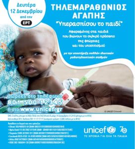 Την Κυριακή 11 Δεκεμβρίου στο χώρο που πραγματοποιείται το «Χωριό Παραγωγών» (Πάρκο Καραολή & Δημητρίου), θα βρίσκεται ο κουμπαράς της Unicef για την οικονομική ενίσχυση των προσφύγων.