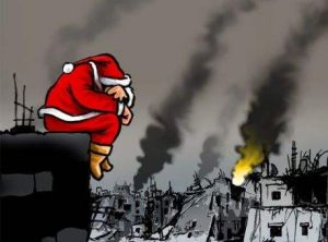 Όταν έφτασα στη Συρία όμως, χτυπήθηκα και έπεσα από τον ουρανό. Μην με ρωτάτε από ποιον ή με τι. Δεν έχω ιδέα. Το έλκηθρό μου σωριάστηκε στο έδαφος, οι τάρανδοι και όλοι μαζί πέσαμε στην έρημο, κοντά σε μια πόλη. Είπα στον Ρούντολφ και στους άλλους ταράνδους να πετάξουν μακριά και να βεβαιωθούν ότι είναι ασφαλείς.
