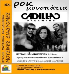 Oι CADILLAC DREAMERS θα μας περπατήσουν, με γνωστά ροκ και ποπ τραγούδια για ενα δυναμικό ξεκίνημα της νέας χρονιάς.