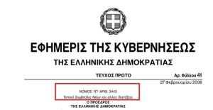 Το βρήκα στην Εφημερίδα της Κυβερνήσεως. Τεύχος Πρώτο , ΑΡΙΘΜΟΥ ΦΥΛΛΟΥ 41, 27/02/2006 (πατήστε εδώ)