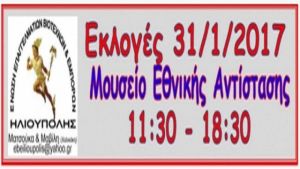 ΚΑΛΕΙ ΟΛΟΥΣ ΤΟΥΣ ΕΛΕΥΘΕΡΟΥΣ ΕΠΑΓΓΕΛΜΑΤΙΕΣ, ΕΜΠΟΡΟΥΣ ΚΑΙ ΒΙΟΤΕΧΝΕΣ ΤΗΣ ΠΟΛΗΣ ΜΑΣ ΝΑ ΣΥΜΜΕΤΕΧΟΥΝ ΣΤΙΣ ΕΚΛΟΓΕΣ ΠΟΥ ΘΑ ΓΙΝΟΥΝ 31/1/2017 ώρα 11:30 – 18:30 μ.μ. ΣΤΟ ΜΟΥΣΕΙΟ ΕΘΝΙΚΗΣ ΑΝΤΙΣΤΑΣΗΣ (στα γραφεία της ΠΕΑΕΑ),