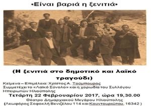 Η εκδήλωση είναι συνέχεια προηγούμενης εκδήλωσης του Συλλόγου μας που αφορούσε την ξενιτιά στην Ήπειρο.