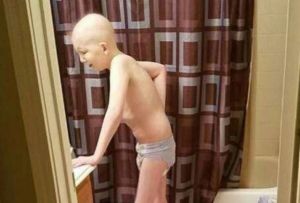Η μητέρα του 10χρονου αγοριού ανέβασε μια φωτογραφία με τον Ντρέικ στο μπάνιο να στέκεται όρθιος με αφόρητους πόνους.