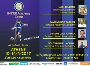 Μετά την επιτυχή διοργάνωση των Camps της Inter F.C., σε ΗΠΑ, Κίνα, Ιαπωνία, Εμιράτα και Βραζιλία, οι Ακαδημίες ποδοσφαίρου της Inter σε συνεργασία με την Stargate football Events, διοργανώνoυν το 1ο εκπαιδευτικό Camp ποδοσφαίρου της Ιντερ στην Αθήνα.