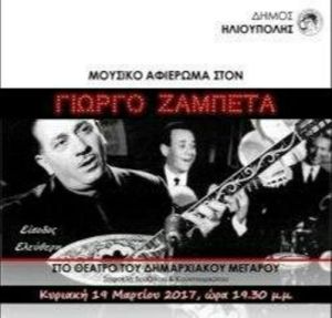 Μουσικό αφιέρωμα θα πραγματοποιηθεί Κυριακή 19 Μαρτίου 2017 και ώρα 19.30 μ.μ., στον Γιώργο Ζαμπέτα
