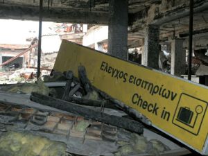 Το έρημο μέρος, με τα «αποκαΐδια»-ενθυμήματα μιας εποχής: κτίρια, σκελετοί αεροσκαφών, πίνακες ανακοινώσεων, κυλιόμενες σκάλες, ό,τι συνθέτει ένα αεροδρόμιο. Μόνο που όλα είναι «πρώην». Ενα ιδιότυπο μνημείο-μουσείο του πρόσφατου παρελθόντος (σταμάτησε να λειτουργεί το 2001). Χρησιμοποιήθηκε τελευταία ως προσφυγικός καταυλισμός.