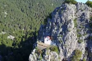 Το εκκλησάκι βρίσκεται πάνω σε έναν βράχο που βγαίνει από μία «θάλασσα» με πεύκα και θυμίζει τα μοναστήρια του Άγιου Όρους.