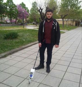 O μαθητής της δευτέρας Λυκείου από την Αλεξάνδρεια, Αθανάσιος Μπάμπαλης, μαζί με τον καθηγητή πληροφορικής του σχολείου, Γιάννη Σιταρίδη, έφτιαξαν ένα «έξυπνο» μπαστούνι για τυφλούς, το οποίο μέσω ενός αισθητήρα υπερήχων «αντιλαμβάνεται» τις αποστάσεις, εντοπίζει τα εμπόδια και στέλνει ηχητικό μήνυμα στο κινητό του χρήστη για να μην πέσει πάνω τους.