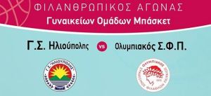 Tην Κυριακή 23 Απριλίου στις 12:00μ.μ. θα πραγματοποιηθεί μια ξεχωριστή φιλανθρωπική εκδήλωση, με μουσική και πολλά δρώμενα, στη διάρκεια της οποίας θα διεξαχθεί φιλικός αγώνας μπάσκετ μεταξύ της γυναικείας ομάδας του Ολυμπιακού Σ.Φ.Π και της Γ.Σ. Ηλιούπολης, στην μνήμη της μπασκεμπολίστριας Κικής Αντωνίου που έφυγε νωρίς, δίνοντας τη δική της μάχη με τον καρκίνο.
