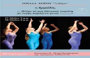 Συγκεκριμένα, πρόκειται για ένα χορόδραμα με τίτλο «Αρμίδα,... Πλέμε σέ μιά θάλασσα γιομάτη μέ λογῆς παράξενα φυτά, ...» και θα φιλοξενηθεί για δύο μέρες - Σάββατο 27 και Κυριακή 28 Μαΐου - στο θέατρο Αργώ.