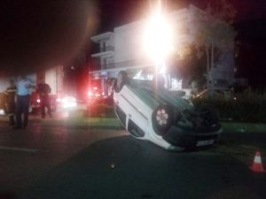 Το αυτοκίνητο βρέθηκε με την οροφή στο οδόστρωμα ενώ το άλλο που το κτύπησε στην αριστερή πλευρά έφυγε...