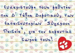 Για τα παιδιά της Δ' δημοτικού από τα Εκπαιδευτήρια Σύγχρονη Παιδεία όμως, το υπόλοιπο του Ταμείου τους έγινε βοήθεια για τους αδέσποτους φίλους τους.