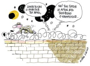 Και όντως! Την ίδια ώρα, όταν το ρολόι του Αγίου Σουλπικίου σήμανε τη δωδεκάτη νυχτερινή, σε άλλη βίλα, αυτήν τη φορά στα νότια προάστια, ο αντιπρόεδρος της κυβέρνησης κ. Δραγασάκης είχε συνάντηση με τον κ. Γιάννο Παπαντωνίου. «Και εμείς για τον σοσιαλισμό αγωνιζόμαστε, σύντροφοι», κραύγασε ο Γιάννος μόλις είδε τον Γιάννη, μη δυνάμενος να κρύψει τη συγκίνησή του για το ευχάριστο γεγονός.