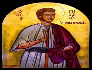 Στην αρχή ο δήμιος του έδωσε μια ευκαιρία. Τον χτύπησε με αντεστραμμένο το ξίφος στο λαιμό για να τον εκφοβίσει, προσδοκώντας τη μεταστροφή του. Όμως, ο γενναίος Μιχαήλ τον παρότρυνε με θάρρος, λέγοντάς του: «Χτύπα για την πίστη».