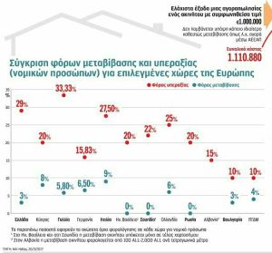 Ο δε φόρος υπεραξίας για τα νομικά πρόσωπα στην Ελλάδα, στην περίπτωση που η επένδυση είναι επιτυχημένη και το ακίνητο μελλοντικά ανατιμηθεί και πουληθεί, ισούται με τον φόρο των επιχειρήσεων (29%), αφού αποτελεί εισόδημα και είναι έτσι από τους υψηλότερους στην Ευρώπη.