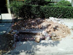 ''2 λαγούμια στην Διονύσου 13 στην Ηλιούπολη εδώ και δύο μήνες χωρίς καμία επισήμανσή χωρίς καμία προστασία έξω από την είσοδο της πολυκατοικίας όπου κάθε μέρα διέρχονται 10αδες ενήλικες και παιδιά.
